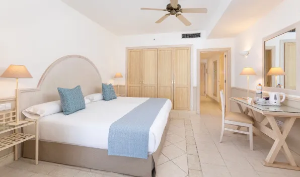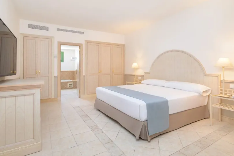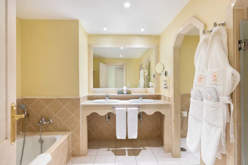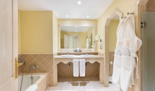 Warm decor creates a relaxed setting and the perfect holiday atmosphere. Rooms feature either a king-sized bed or two twin beds, a sofa bed, and a modern, spacious bathroom with double sinks, a hydro massage shower, and a bathtub.