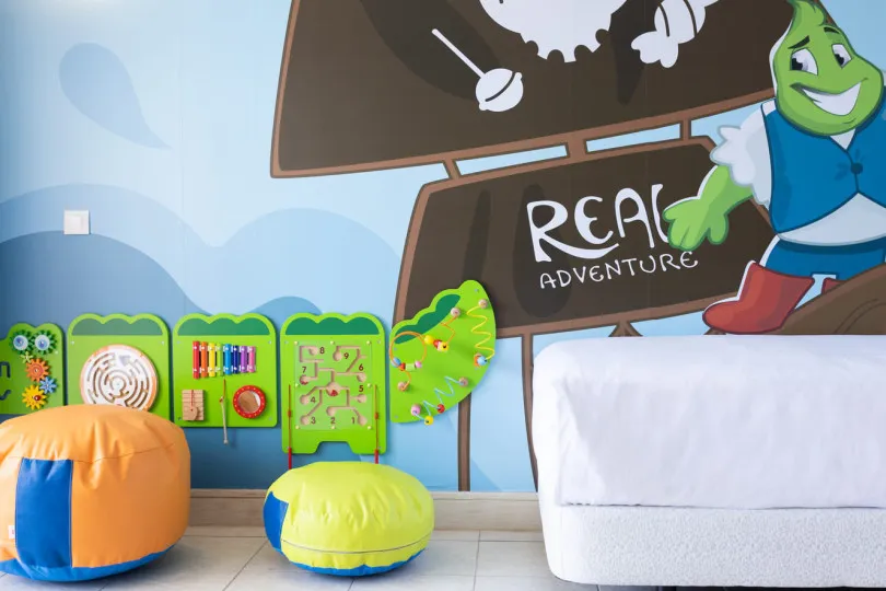 The colorful hallways you'll find upon arriving at your room will reveal that you're in the most magical part of the hotel. Open the door and the children will be swept away into a fairy tale, where even the walls tell stories. The Themed Junior Suite is the perfect option, combining a quiet room for parents and a fun children's area.