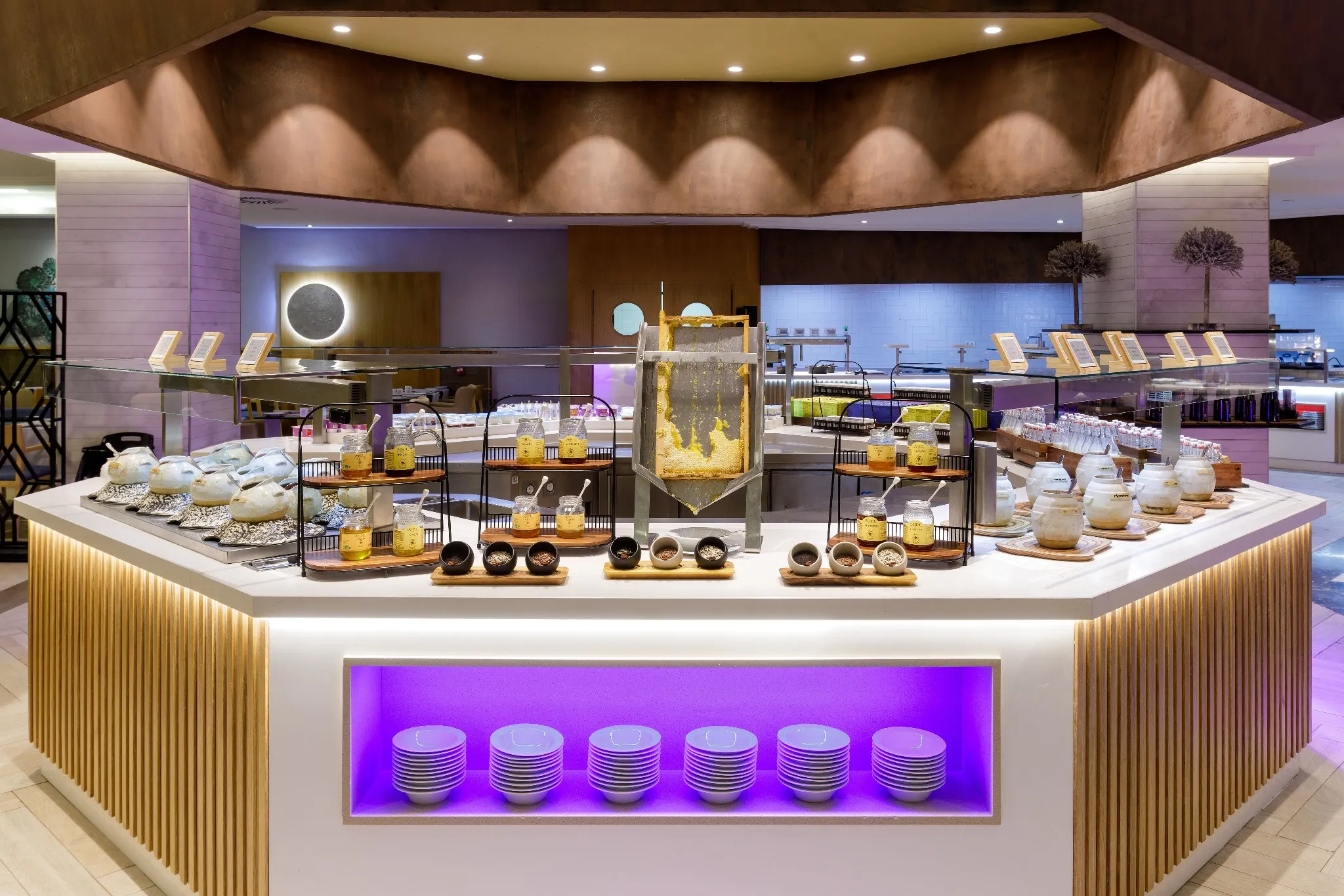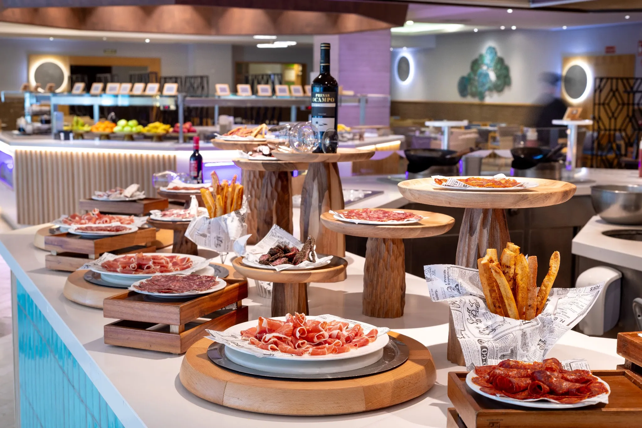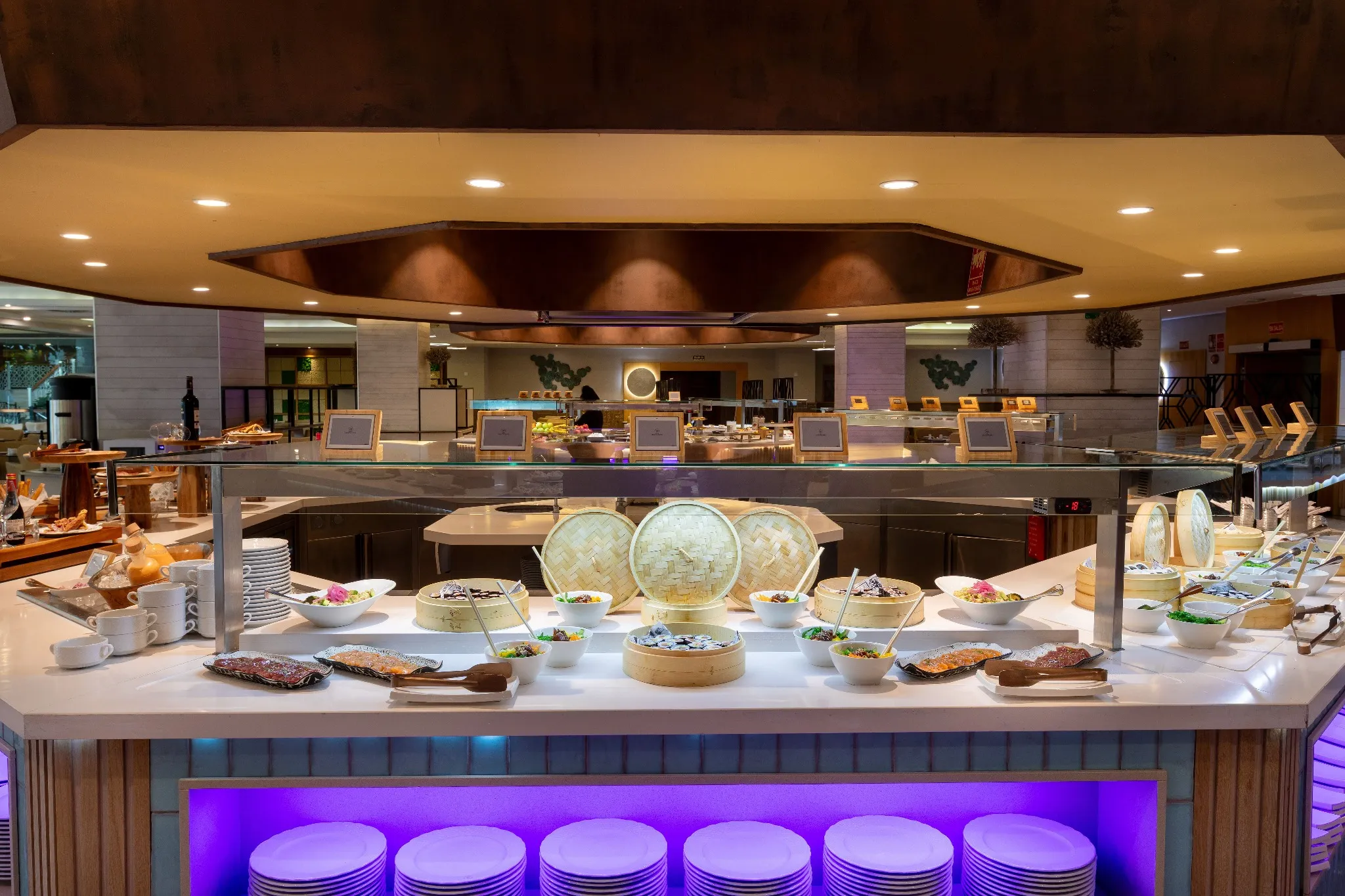 Ogni giorno vi proponiamo quattro postazioni di cucina dal vivo, ognuna per uno stile di cucina: italiano, asiatico, pesce e carne. Scegliete il vostro piatto preferito e chiedete allo chef di prepararlo proprio come piace a voi. Inoltre, vi delizieremo ogni giorno con un piatto gourmet che conquisterà anche il più raffinato dei palati.